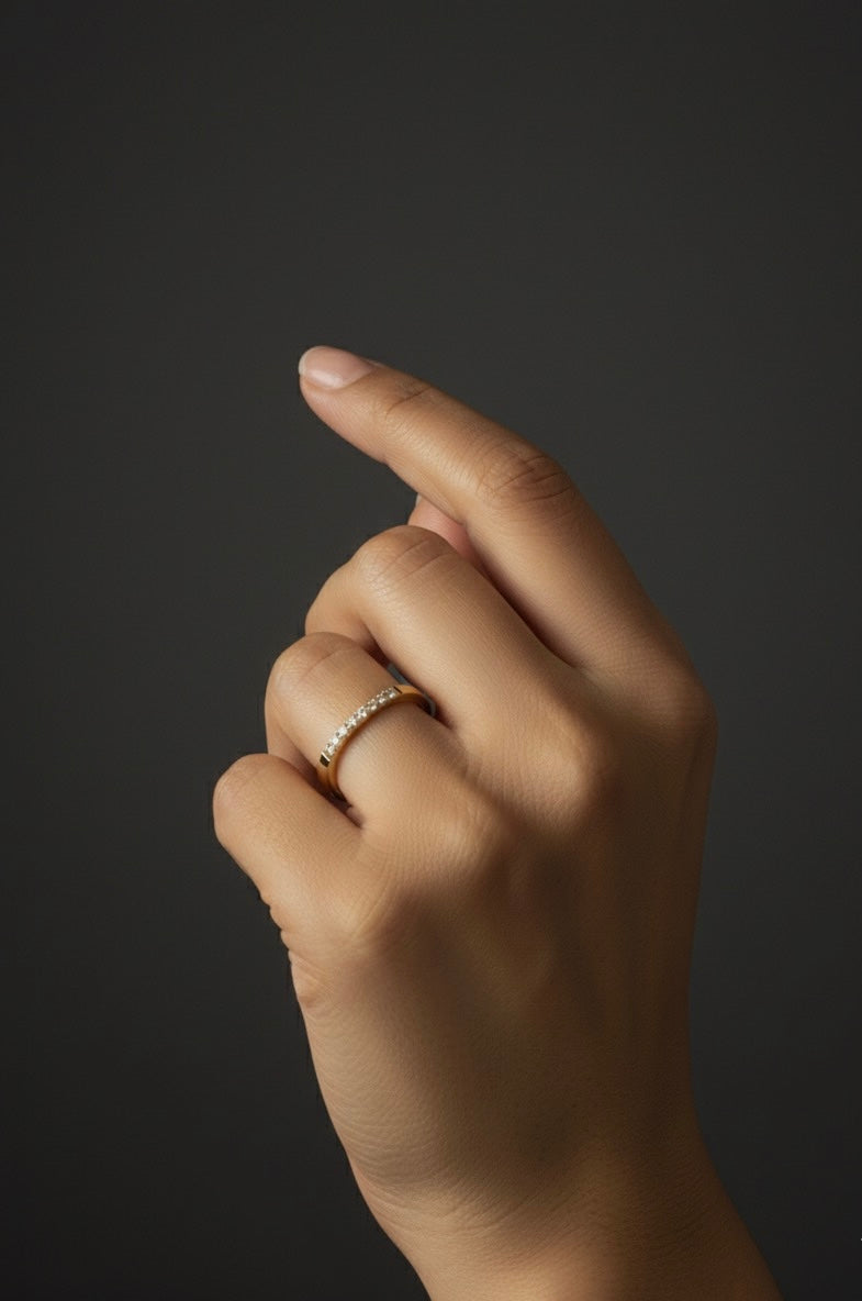 Delicate gold ring with a smooth rounded silhouette; subtle yet timeless.