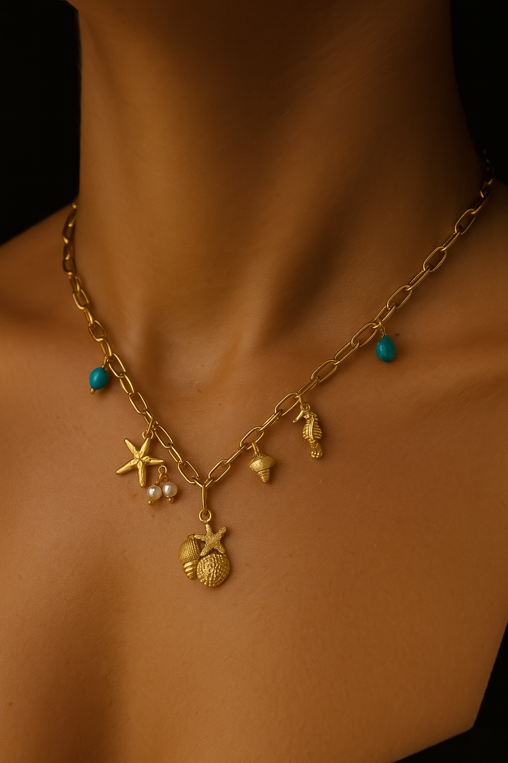 This necklace captures the spirit of seaside escapes and summer nostalgia. Whether you're vacation-bound or bringing beach vibes to the city, this piece adds an elegant, playful touch to any outfit.